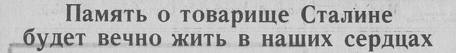 ЦК КПСС: «Перестало биться сердце соратника и гениального продолжателя дела Ленина, мудрого вождя и учителя Коммунистической партии и советского народа — Иосифа Виссарионовича Сталина».