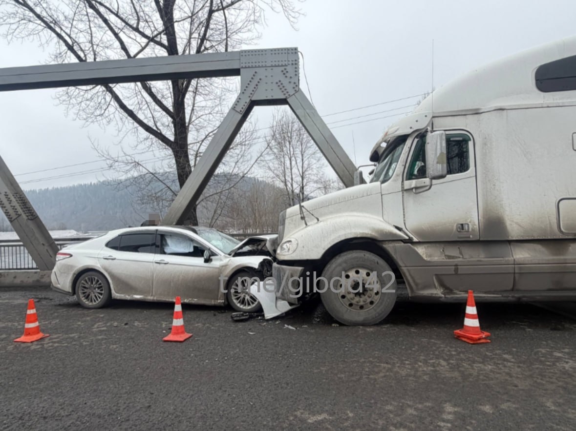 В Кузбассе водитель легковушки выехал в лоб грузовику на мосту (ФОТО)